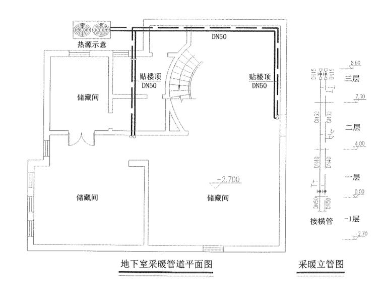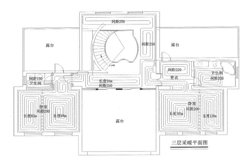 鑒于地暖墊層本身有較大的蓄熱能力,足以維持室內的熱舒適性,可不設蓄能水箱,采用空氣源熱泵機組直供。各層地暖平面如圖。